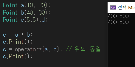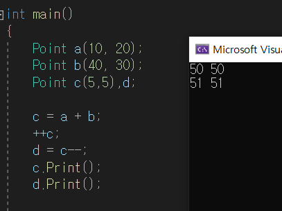 Point operator+(const Point& other) // 덧셈(이항) 연산자