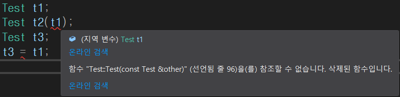 반대로 컴파일러가 생성자를 만들어주는데 이를 명시적으로 막는(삭제) 방법이 생겼다. 바로 delete 키워드