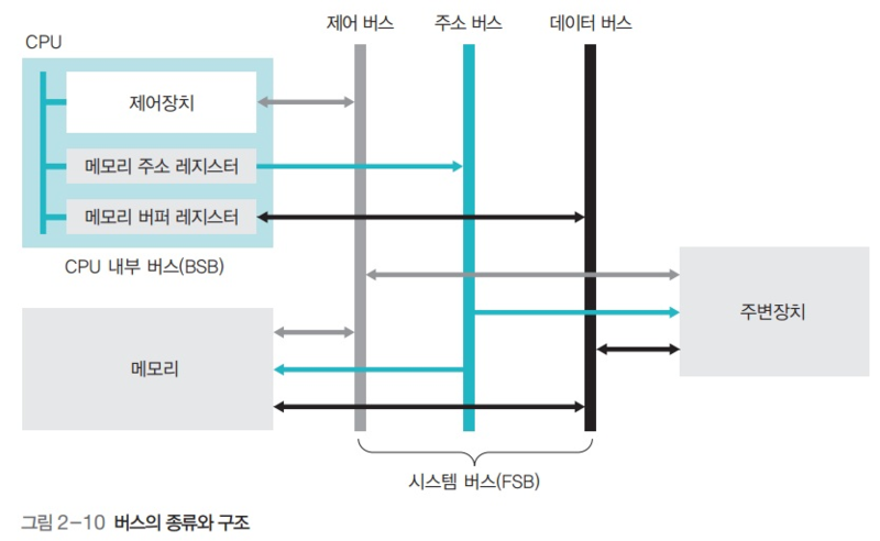 - 버스는 CPU와 메모리, 주변장치간에 데이터를 주고받을 때 필요하다.