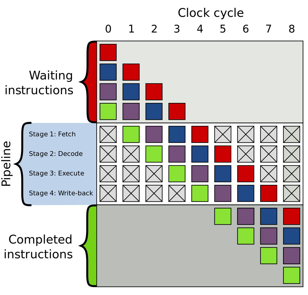 즉 하나의 빨래 바구니가 세탁기에 넣고 다 돌렸다면, 건조기에 넣어 빨래를 건조시키고, 그 다음 빨래 바구니를 가져와 세탁기를 돌리는 방식으로 각 빨래를 하는 단계(각 명령어의 처리 단계)를 쉬지 않고 처리할 수 있는 것.