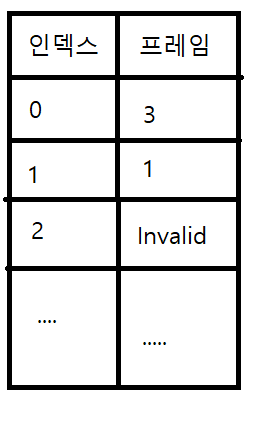 메모리 관리자내에 페이지 테이블은 페이지 번호가 인덱스가 된다. 해당 인덱스를 가면 프레임(물리 메모리의 단위)을 얻을 수 있다.