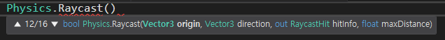 Physics라는 물리클래스안에 Raycast가 존재하고.