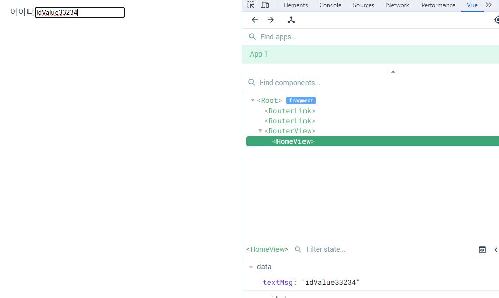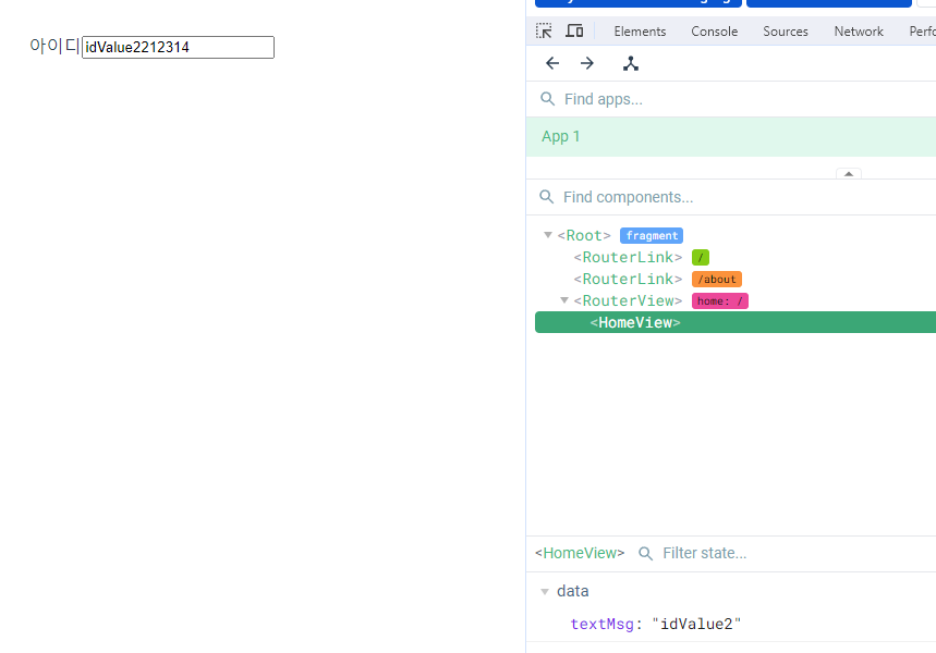 단방향 바인딩이기에 만약 textMsg라는 속성이 변경이 되면 반응성을 통해 화면은 변하게 되지만 사용자가 input의 값을 직접넣으면 textMsg의 값은 변하지않는다는 점.