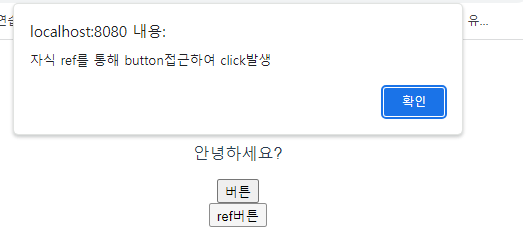 alert('자식 ref를 통해 button접근하여 click발생');